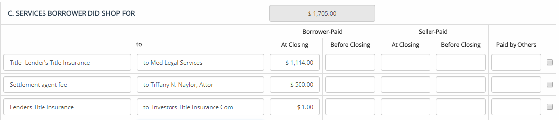 | Closing Disclosure - Purchase > Purchase - Page 2 > C. Services Borrower Did Shop For |